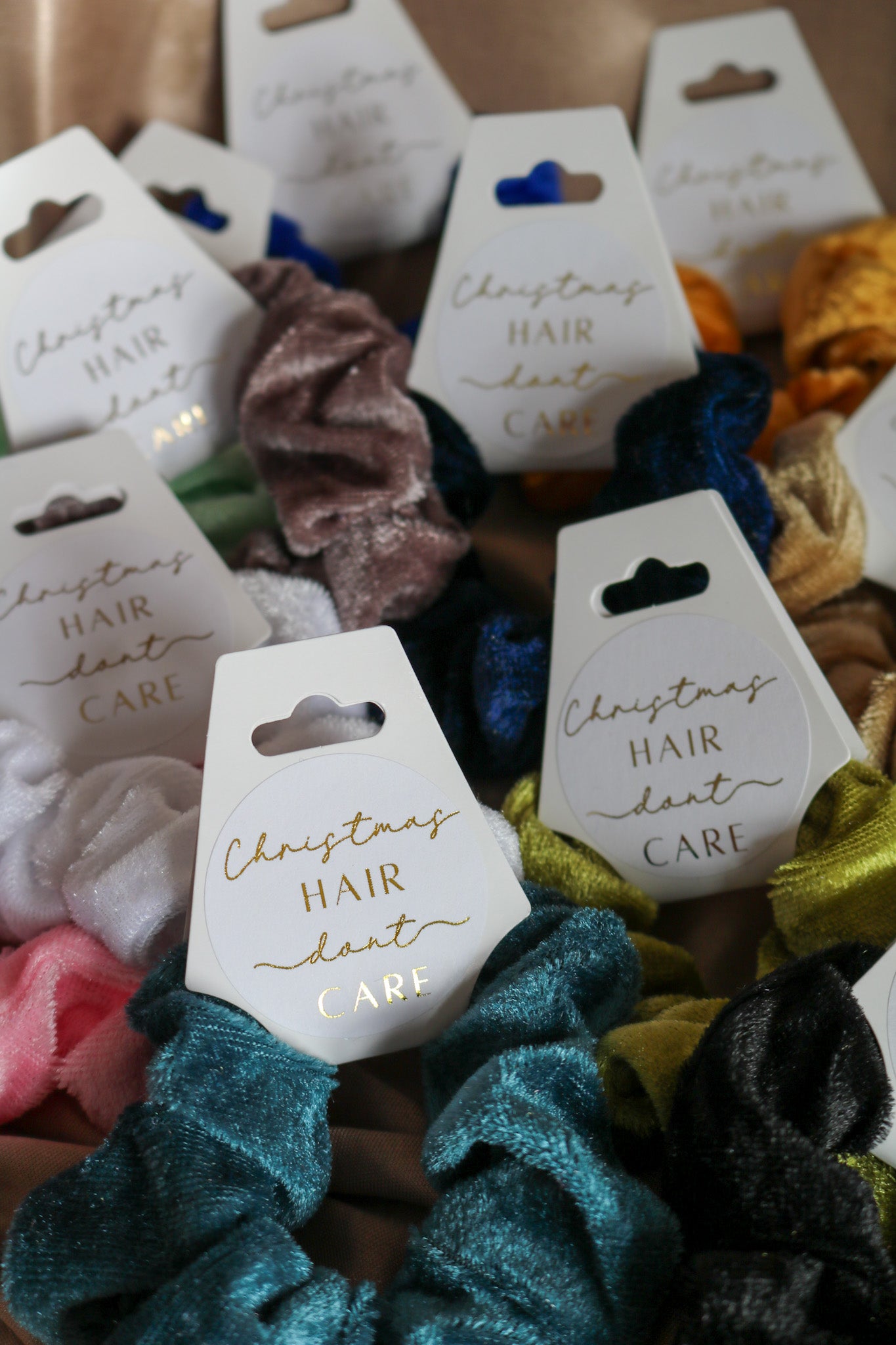 Christmas Hair, Don't Care! Embrace the festive spirit with our fun and trendy velvet scrunchies. Each one is a surprise, treat yourself, give as a gift, or add to a Christmas Eve box!