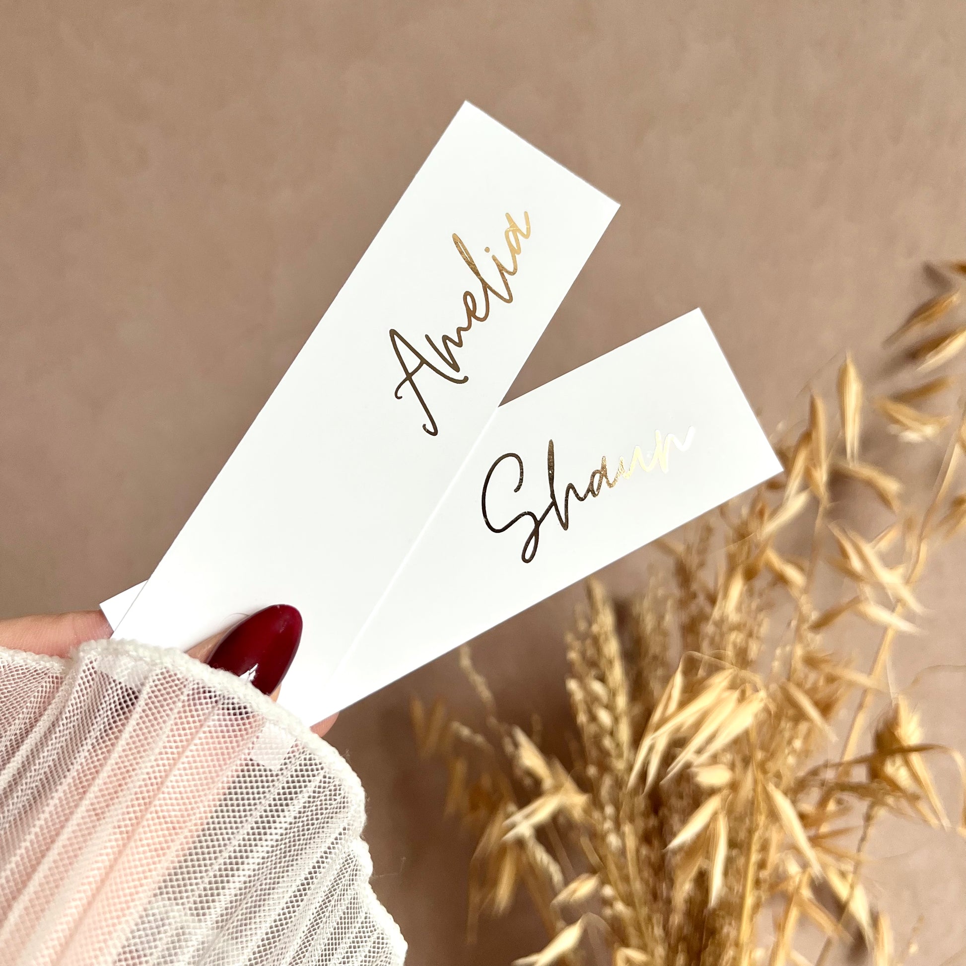 Printed on high quality satin cardstock and hand hot foiled for a metallic finish